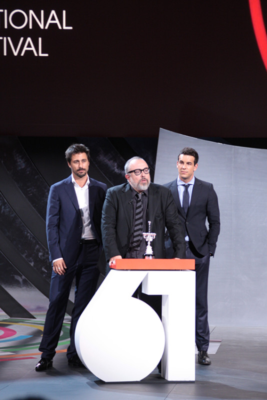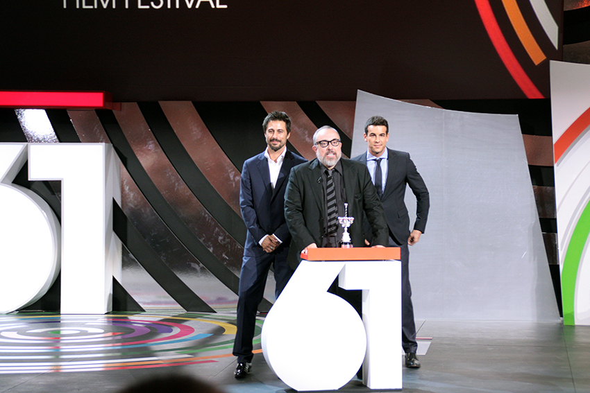 Abrazada de aplausos por el publico, Carmen ha recibido el premio Donostia de la mano del ultimo director que le a dirigido con la película Las brujas de Zugarramurdi Alex de la Iglesia.