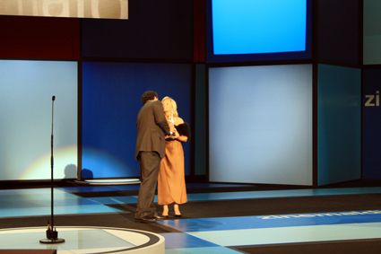 Por la mañana, actriz y director an concedido un fotocool y una rueda de prensa, donde Glenn a terminado cantando.