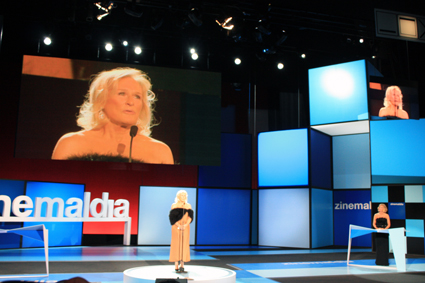 Hoy a las 21:30 de la noche, la gran actriz Glenn Close a recibido el reconocimiento a su larga carrera cinematografíca, con el premio Donostia, de la mano del director de la película «Albert Nobbs», Rodrigo García.